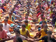 ![]() 与校长坐下交谈不到半小时,校长就组织了这所公立女子学校的全体一千两百名学生,让我们向她们教功。尽管人很多,天很热,但除了炼功的音乐和师父的口令声之外,听不到任何其它的声音。 |