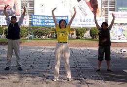 二零零六年十一月三日是日本全国的“文化日”。这一天,爱知县法轮功学员利用休息时间在名古屋市中心的荣广场公园举办了洪法讲真相的活动。法轮功学员在名古屋市中心的荣广场公园摆出展板