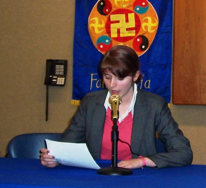 十六岁的高中生凯特琳,一年多前和妈妈一起得法。她在发言中,讲述了自己利用互联网向中国人传“九评”的经历、劝退党的经历。在受到一些不明真相的中国人的恶语攻击后,她坚持讲真相,同时修去爱听好话的心。