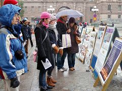 二零零六年十一月四日,瑞典民众冒着风雪参加在首都斯德哥尔摩举行的集会,声援一千五百万勇士退出中共。