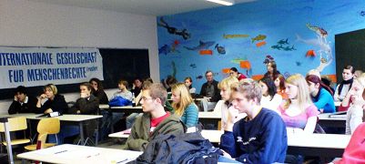 Robert-Schumann高中组织了本校和姐妹学校Frauenhof高中的学生听人权报告。卡姆市的Josef天主教会提供教堂楼的大厅,放映揭露中共对法轮功非人性迫害的电影。在电影展、人权报告会上知道了真相的男女老少都纷纷签名,要求制止中共滔天的罪恶!其中一位流亡德国,生活在卡姆市近十年的越南教授,对法轮功遭受迫害心痛至极,因为他在越南曾经饱受共产党的折磨,当年的经历刻骨铭心。老教授找到法轮功学员,感慨万分。他说,他已经向越南在海外的杂志投稿,揭露中共迫害法轮功。他还告诉他在美国的老同行,让他们也要帮助法轮功,制止迫害。