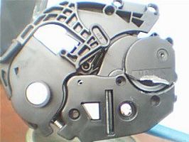 顺便再提一下,这种佳能1210激光打印机的出纸口有一对儿直径象筷头粗细的小塑料滚轮儿,打印机工作时间稍长,它就发热,热的严重时,塑料滚轮表面熔化粘纸。对此,我们这儿懂技术的同修用一种银白色的用来粘盆的纸,在小滚儿的表面粘一层,小塑料滚儿再也不熔化了。