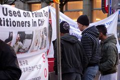 也有一些中国游客经过,学员向他们派发了《九评共产党》。