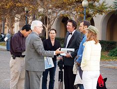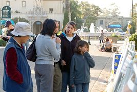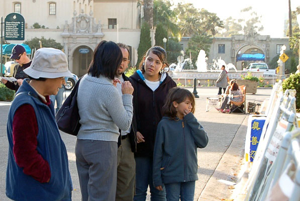 有几个中国人来到反酷刑图片展的展位前,学员热情的递上《九评共产党》。带队的女士见状兴奋的高声跟其他人说:“啊!《九评》。你们几个人都拿一份,带回去好好学习,学完了就退党。”她接着对学员说:“凡是读了《九评》的都会退党。”她指着其中两人说:“他们俩已经退了。”她又特意对另几个男士说:“拿了没有?”其中一个男士笑着对学员说:“我不是党员,但会好好看看。”(其实团员、少先队也应该退出)