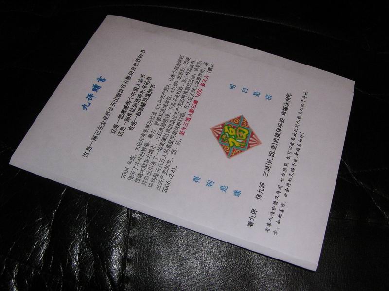 用A4纸做九评的简易封面,附封面赠言(图)