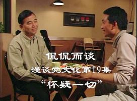 金然:那么我有一个想法,您比如说,刚才说怀疑一切这种思维方式,比如说我听到一个新事物,或者说我看到一个我不了解的事物,我首先是持怀疑的态度,那我觉的这也是个人的选择,就象是一个人他可以每一件新事物都是相信的,我觉的这个好象也没有大问题,是吗?