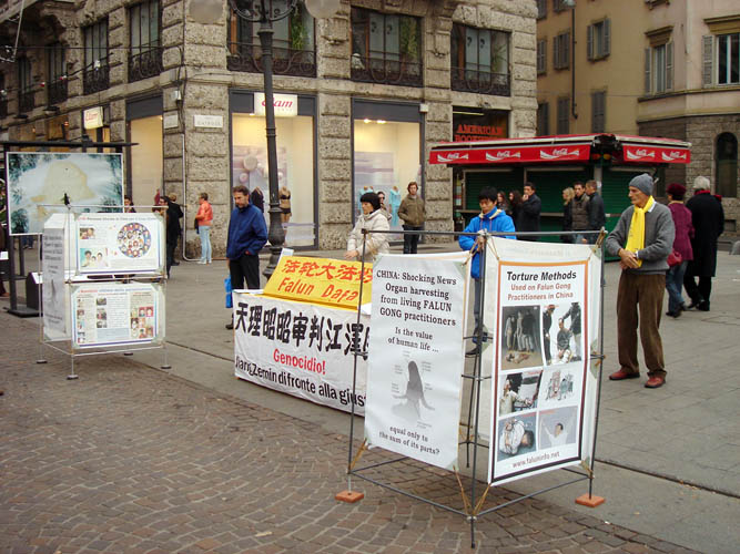 米兰市中心的但丁街上有圣诞节市场,为迎接圣诞节忙于大采购的人们特别多。人们被法轮大法的祥和优美所吸引,也被中共残酷迫害法轮功学员的事实所震惊,不由停下匆匆的脚步,接资料了解真相,并签名声援法轮功反迫害。
