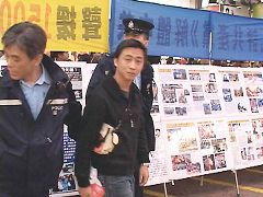 「十二月十九日傍晚,设在香港闹市区的退党服务中心摊位被一位大陆籍凶徒破坏踢翻,一位义工被打伤。在香港民众协助下,该凶徒被警员抓住并送往警署。上个月也曾遭遇类似袭击的受伤义工坚信:这是中共邪党特务操纵的事件。」