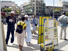 【明慧网二零零六年十二月二十七日】二零零六年十二月九日,瓜德鲁普的法轮功学员在皮特尔角(Pointe -à -Pitre)市中心组织了一次活动,揭露中共活体摘取法轮功学员器官牟利的罪行。听说这种非人的罪恶,人们十分震惊。一些人表示,在现代化的今天,怎么还存在着如此残暴的行为!一位女士对学员们说:“这些人怎么能在人身上做这样的事?我们要密切关注这件事。”