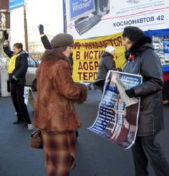 在场的很多俄罗斯人告诉法轮功学员,他们非常了解共产党的邪恶, 因为俄罗斯曾经深受其害。他们纷纷谴责中共迫害好人、践踏人权的罪行,并签名声援法轮功学员反迫害。