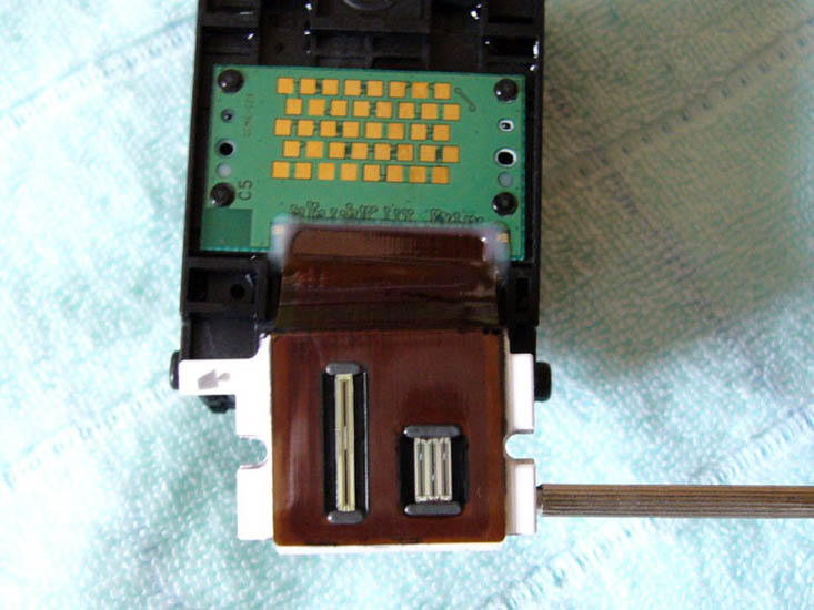 我看到同修写的用盐酸浓度为50%稀释液清洗,把盐酸点在墨头上面(尽量不要把盐酸滴在胶皮上)2--3分钟后用清水清洗晾干后即可使用。(一定要晾干,不然会烧坏墨头线路板)还不好用时,再点盐酸,反复清洗直到好用为止。