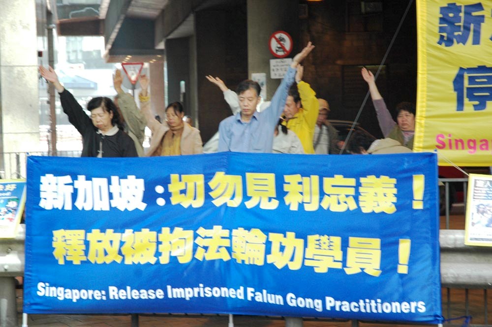法轮功学员在新加坡驻香港总领事馆外抗议