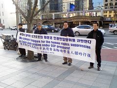 原定于下午两点举行的记者招待会由于大使馆警备人员的持续妨碍,推迟了一个半小时才开始,气温也骤然降至零下。但学员们突破障碍,坚持举办活动,并朗读了声明。声明书中谴责了新加坡法庭无视事实,做出不公正判决,将两位在中使馆前和平抗议的法轮功学员逮捕入狱。全体韩国法轮功学员强烈要求新加坡政府立即撤销这种错误判决,不再做中共邪党的帮凶。