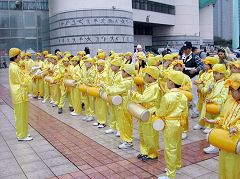![]() 法轮功学员在新加坡驻香港总领事馆外抗议 |