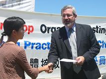 丹麦学员抗议新加坡政府拘禁法轮功学员(图)