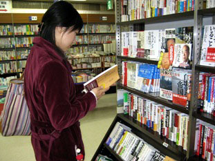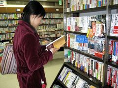 ![]() 纪伊国屋福冈本店内的《九评》书籍 | ![]() 在书店热心看《九评》的情景 |
