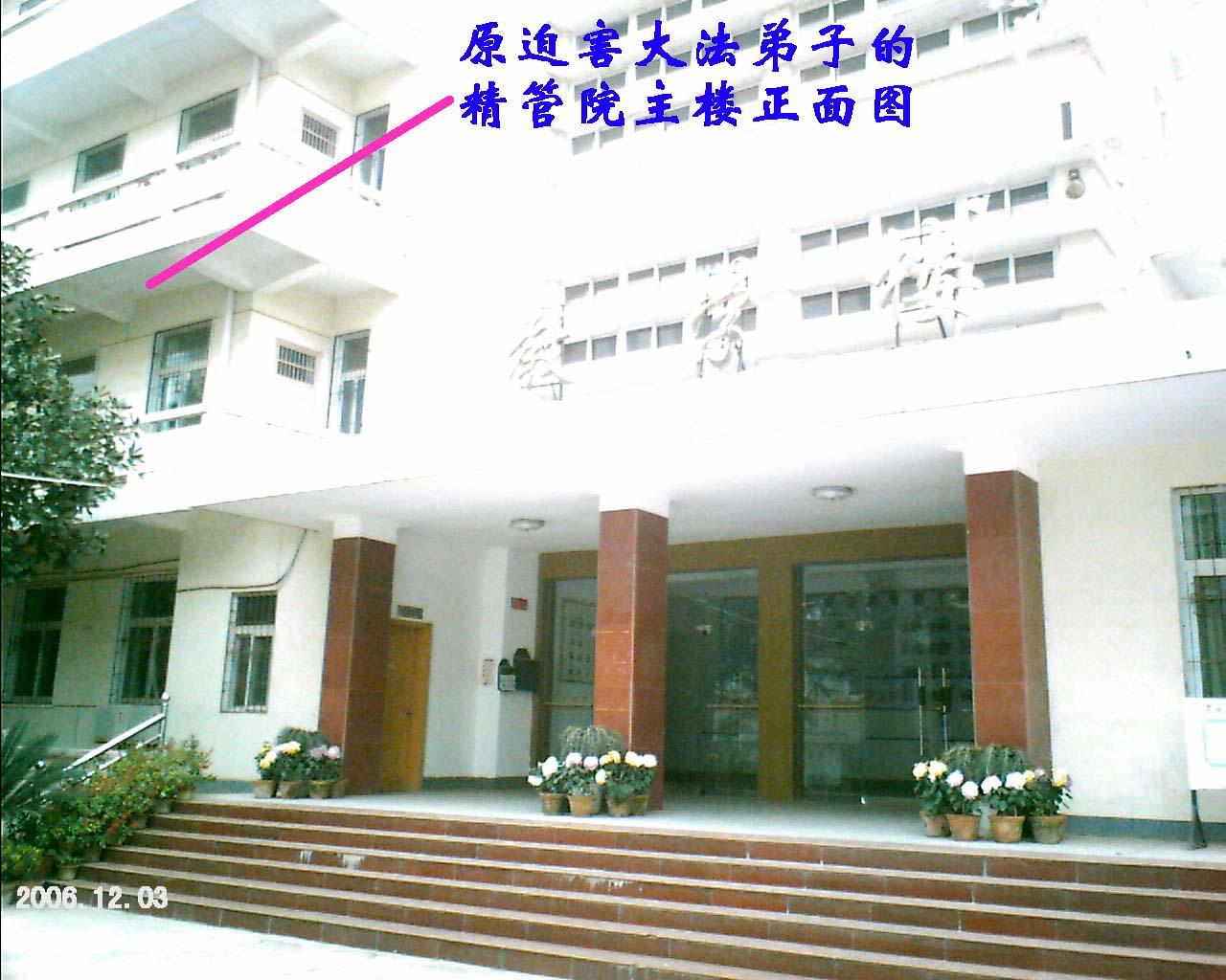 集中关押迫害大法弟子的地方,男的关押在四楼,女的关押二楼,如果女学员人多了,就和男病室四楼兑换。此大楼现经过了外表粉刷装修,但丝毫改变不了中共邪恶党徒对大法弟子摧残的点点血债,苍天都记录在案!