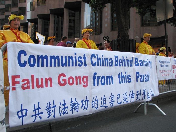 旧金山法轮功发言人张雪容指出,游行主办者中华总商会由顾问白兰操控,把中共对法轮功的迫害延伸到了旧金山。法轮功从2000年就开始申请在旧金山的新年游行,一直遭拒;只有在2004年,学员用法轮大法的名义申请游行获准,原因是总商会当时不知道“法轮大法”团体就是“法轮功”团体。自99年中共迫害法轮功开始,白兰等亲共人员就在湾区协助中共迫害法轮功。