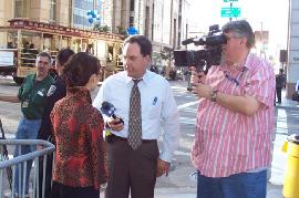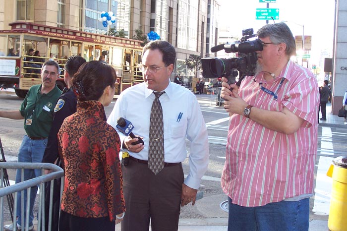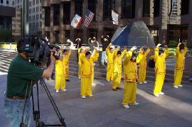 游行当日,为了保障法轮功学员的言论自由的权利,旧金山警方在游行队伍经过之处,划出一个区域,提供给法轮功学员用以表达自己的声音。ABC、NBC、CBS等电视台,和美联社等媒体都派记者到场采访;更有许多民众围着法轮功的演示区拍照留念,支持法轮功参加游行。
