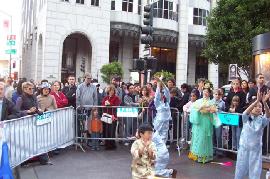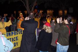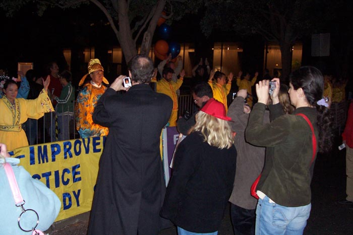【明慧网2006年2月13日】(明慧记者黄凯莉、王英旧金山报导)旧金山华人新年游行于2006年2月11日晚上举行。由于中共恶势力在海外的渗透,法轮功参加游行的申请,遭到由亲共人员控制的主办单位中华总商会的拒绝;此事件受到了主流媒体和各界的广泛关注。