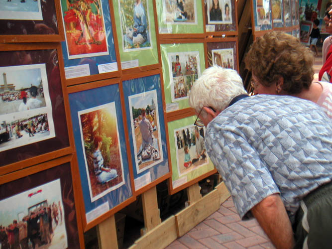 无独有偶,前者刚走,一位广播电台的播音员就来到展台前,他向学员们说:“我很想炼法轮功,怎样才能找到炼功点?”当得知当地并没有炼功点时,马上表示,法轮功在凯塔亚的传播将会从他开始。原来他在两个月前从朋友处听闻了大法,自此萌生了要炼法轮功的念头。今天,在这里与法轮功不期而遇,他感到非常的高兴。最后他向学员表示,希望“摄影展”能在当地多停留些日子,以便他可以快快开始学炼法轮功。法轮功学员告诉他,为了凯塔亚的有缘人,摄影展将在两天后再返此地,同时将会有功法展示。欣喜与激动的他连声说谢谢。并表示,他将会安排电台的画廊供摄影展所用,同时会透过北地省的电台向外发布信息。