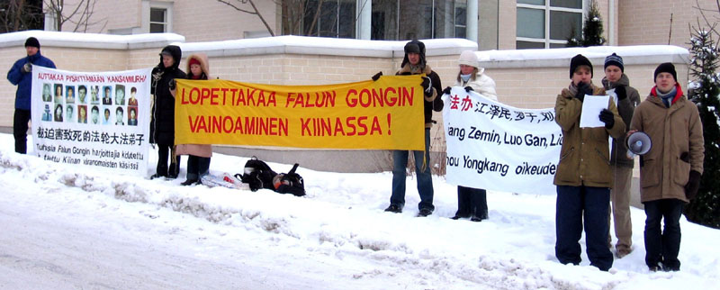 活动中学员分别用芬、中、英文宣读了给中使馆的公开信。信中写道: