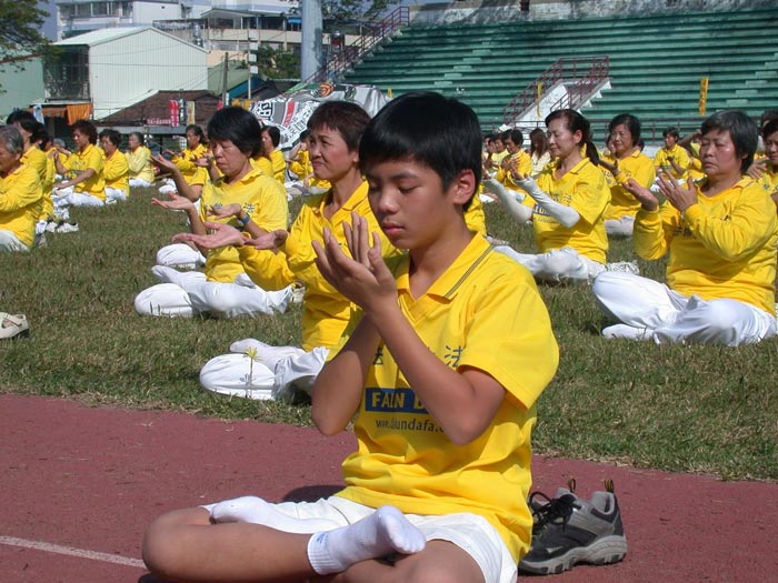 ![]() 每天和弟妹一起炼功学法 | ![]() 参加洪法活动表演功法 |