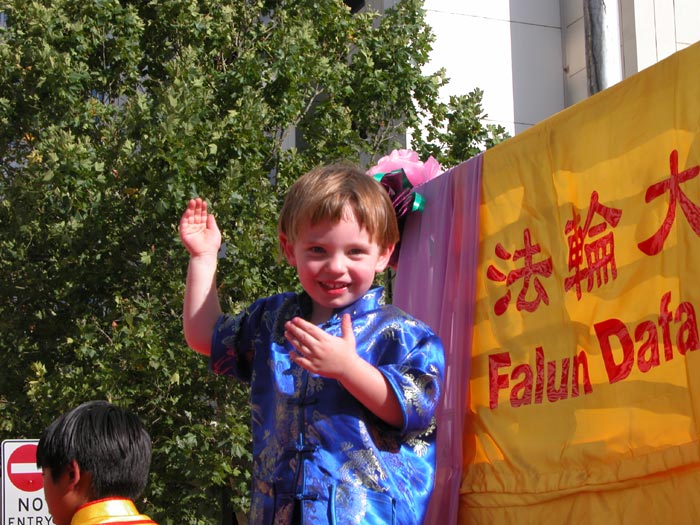 法轮大法团体的阵容强大,由腰鼓队、扇子舞队、花车、唐装队等组成,150多名法轮功学员参加了游行,沿路受到围观市民的欢迎。主席台的广播员向观众介绍法轮功时说,这是此次游行中最庞大的队伍。游行结束后,评委宣布获奖名单。法轮功学员的队伍获得“最佳主题奖” (Best Theme)。