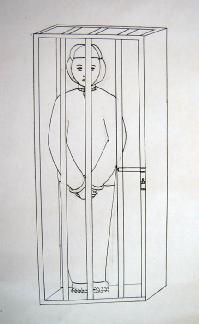 小笼子是用白钢做成的。大法弟子都被迫戴上拳击帽,戴着手铐,大法弟子光脚站在笼子里,每天都要站上二十小时左右。有的大法弟子一直被逼站了五天。大法弟子被迫害的双脚肿大。有的大法弟子被几种酷刑反复迫害。以此来达到转化的目的。