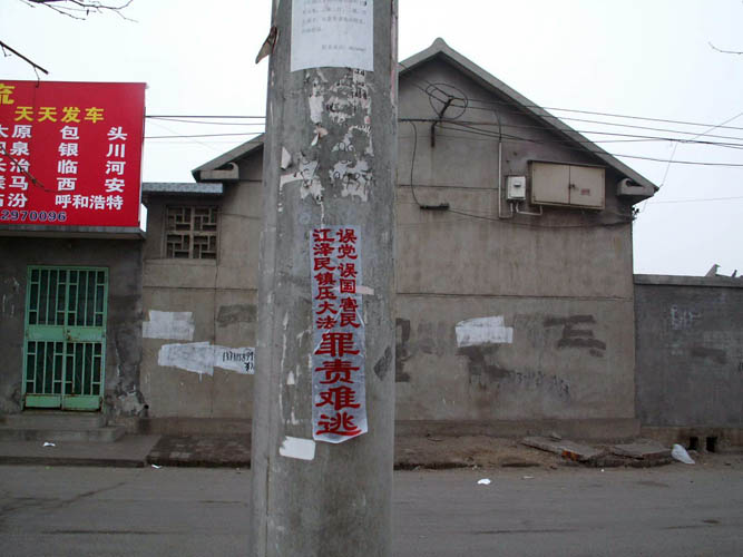之后,恶警从公安局调来很多警力,对张道清的家乡村组的乡亲们进行非法强行搜查,结果没有找到张道清,但搜走了张道清的复印机、书籍及资料,并强行劫持了张道清60多岁的母亲、妻子和叔叔,将他们非法关押在正阳县看守所至今。