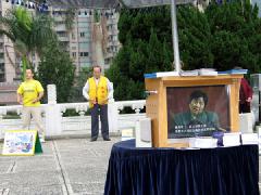 六年前的一天,他在金石堂书局偶然看到《转法轮》这本书,一看就相信书中所写的,感到这是一本提升人类道德的宝书,从此走入修炼法轮功的行列。法轮大法除了让他得到健康身体外(六年多没使用过健保卡),让他改变最大是,做事会先考虑别人,随时要求自己,要对人善,不那么自私,心里时刻希望要让更多的人知道与了解法轮功,一有假日就去洪法炼功。