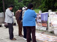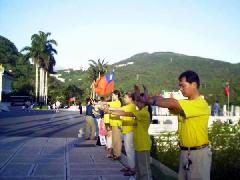 法轮功在台湾已是家喻户晓,从乡村到都市,已有近千个炼功点,超过四十万的修炼人数。为了揭露迫害真相,在台湾各地的观光景点如阿里山、日月潭、中正纪念堂、垦丁国家公园等地方都有法轮功学员们的身影。他们总是身着黄衫,静静的坐在那里打坐。如果下次你经过旅游景点看到他们,请您不要忘了伸出援手,支持他们,共同制止这场迫害。