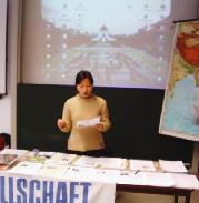 滕女士讲诉法轮功在中国大陆遭受的严重迫害和诽谤新年前后,国际人权协会的瑞姆先生和德国卡姆市法轮功学员代表敏滕•施为格分别前往卡姆周边地区的两所学校:诺陶布林高中和在克茨汀实科学校向学生讲述正在中国发生的人权迫害。