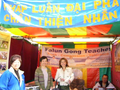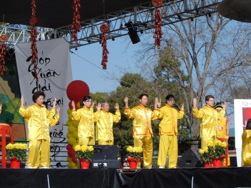 【明慧网2006年2月4日】2006年1月27日,位于美国加州橙县(Orange County)的果园公园(Garden Grove Park)有一连三天的越南新年节庆,节庆的目的之一是为了保持传统的文化精髓。洛杉矶法轮功学员在这次新年庆典中,向民众展现优美祥和的五套功法,带来最美好的新年祝福。