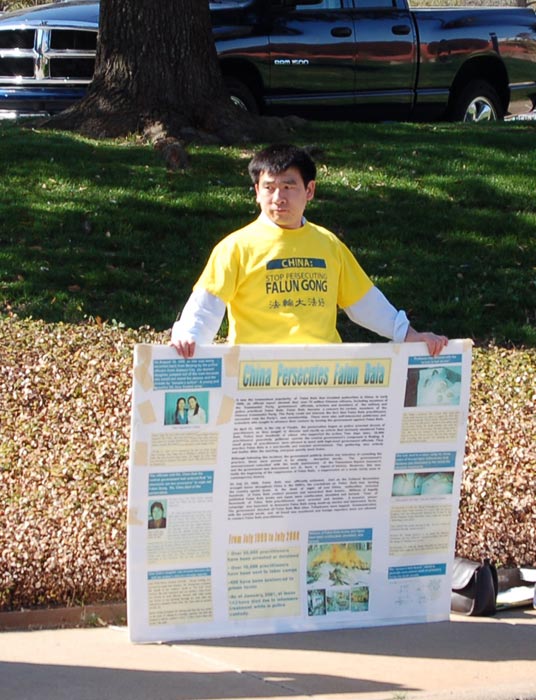 【明慧网2006年2月6日】(明慧记者曾洪达拉斯报道)2006年2月2日,中共驻美大使周文重到达拉斯参加由世界事务理事会(World Affairs Council),在The Wyndham Anatole酒店举行的午餐会。达拉斯地区的法轮功学员在酒店前和平抗议,揭露迫害,使更多的人有机会了解中共在中国大陆迫害人权、剥夺人民信仰自由,残酷迫害信仰“真、善、忍”的法轮功学员的真相。