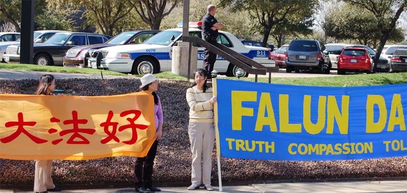 参加抗议活动的张女士说,这里虽然离学员们居住的地方较远,但大家都非常珍惜这个能让更多的人们了解真相的机会,今天来的学员中,有近80岁的老人,也有在附近几个城市上班的年轻人,他们或者请假,或者利用中午休息时间驱车来到这里。张女士还说:“中共驻美大使的午餐会邀请了当地的中西方报纸的记者来参加,当地的最大的英文报纸《达拉斯晨报》(Dallas Morning News)的记者看到了学员的抗议活动,采访并报道了法轮功学员的抗议活动。”