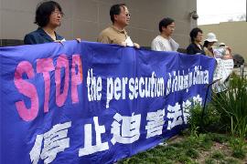 休士顿法轮功学员在中领馆前抗议,强烈谴责中共的秘密血腥罪行