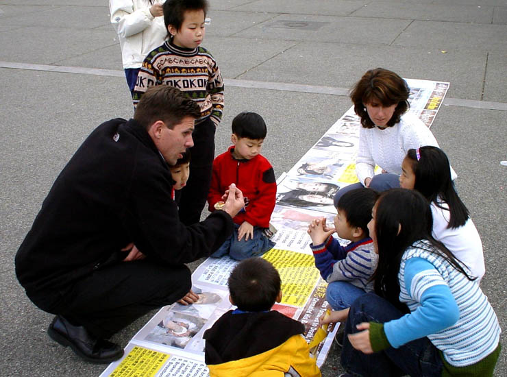 一位讲真相的西人学员说,他听到唐人街居民讲令人震惊的事。他把《九评》递给一位年纪很大的老人,他只有一颗下牙。老人看着《九评》,指着中国共产党几个字说“不好!”而后又告诉学员,在大陆他的家乡小镇,共产党几乎杀了他全家,幸存者之一残废了。他反复告诉学员共产党毁坏他家园和村里的宁静,毁了他的生活。学员告诉老人,神要灭中共。