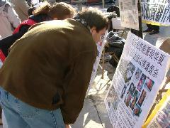 ![]() 民众签名抗议 支持制止虐杀 | ![]() 民众久久凝视被迫害者的照片 |