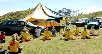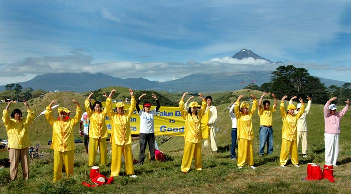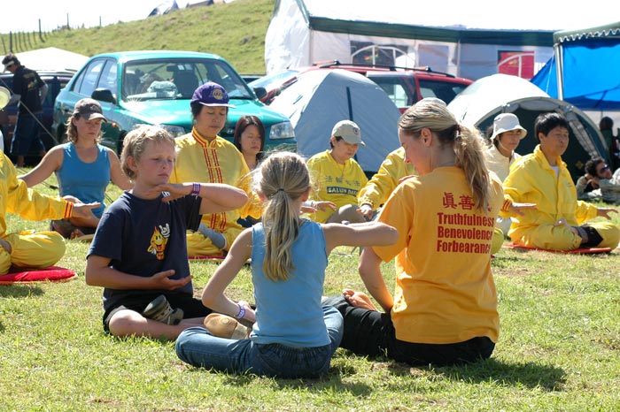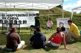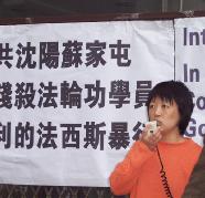 ![]() 法轮功学员在示范功法 | ![]() 法轮功学员绝食抗议 |