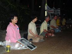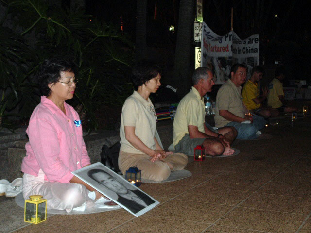 【明慧网2006年3月14日】就中共在沈阳市苏家屯区的秘密集中营关押6000多名法轮功学员并掏空学员内脏器官出售,以及河北强奸案受害妇女刘季芝再遭绑架案,2006年3月10日,澳洲昆士兰法轮功学员来到布里斯本中领馆前,抗议中共对法轮功的野蛮迫害,当晚并举行对受害者的烛光悼念活动。