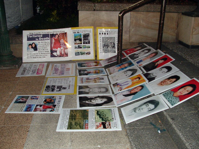 法轮功学员连夜制作的看板揭露邪恶迫害