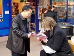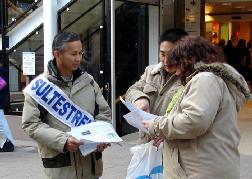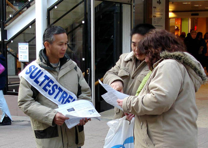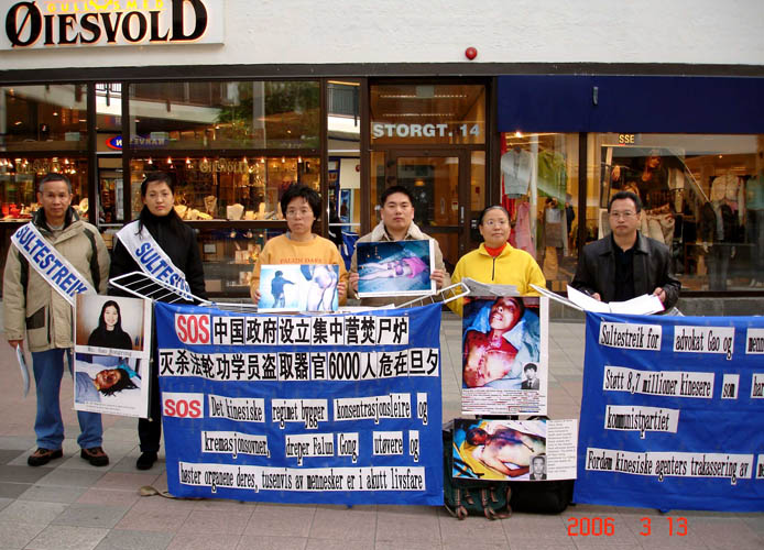 【明慧网2006年3月14日】2006年3月13日下午,挪威法轮功学员来到博德市市中心,绝食抗议中共在沈阳市苏家屯设立集中营大规模虐杀法轮功学员的暴行。学员们打开横幅,向路人散发揭露集中营内幕的真相资料,并征集呼吁制止