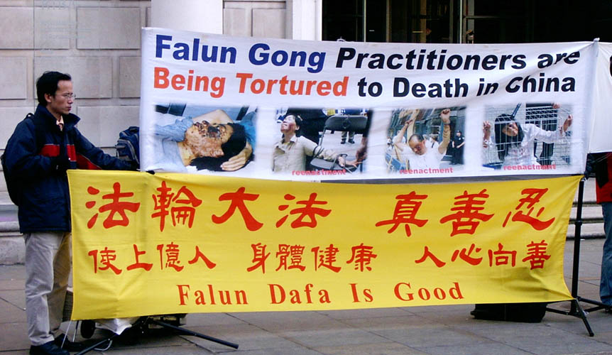 英国法轮功学员中使馆前抗议中共秘密集中营兽行(图)
