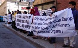 【明慧网2006年3月16日】2006年3月15日中午,美国芝加哥市法轮功学员在中共领馆前举行新闻发布会,揭露并抗议中共设立秘密集中营虐杀法轮功学员,盗取人体器官出售,然后焚尸灭迹的魔鬼行径。