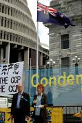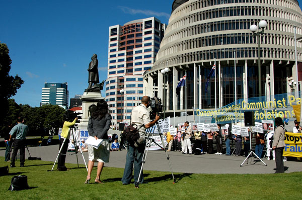 ![]() 新闻发布会在新西兰国会大厦前举行 |