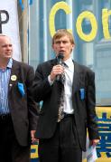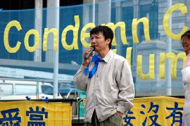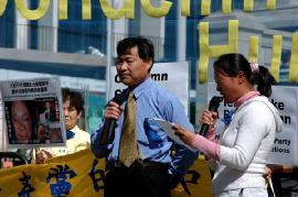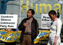 ![]() 中国民主运动新西兰负责人潘晴发言 | ![]() 著名人权大律师凯瑞发言 |