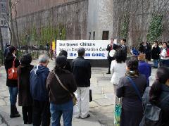 新闻发布会期间,不时有行人经过,纷纷接过真相资料及有关苏家屯集中营屠杀并贩卖法轮功学员器官的特别报道。