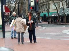 两个多小时的时间几百份传单发放一空。在与人们交谈的过程中,学员感到很多美国人已经非常清楚中共的邪恶,他们正在渐渐意识到自己在这一切中的位置和责任。许多人认为不应和中共做生意,并对一些大公司为了经济利益而放弃道德价值的做法表示谴责。一位先生说:“我能感觉到共产党正在渗入到这个国家。我们不需要便宜东西,我们应该满足自己已经拥有的,否则,我们的贪婪就会被中共利用。”