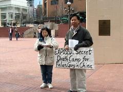学员们手中举着写有“制止中共对法轮功的群体灭绝”、“曝光中共死亡集中营”、“停止虐杀法轮功学员获取人体器官”等的标语牌吸引了众多的行人,人们纷纷询问详情,接收传单。当听到学员的解释后,人们无不感到震惊、愤慨,他们瞪大了眼睛表示:“这真令人毛骨悚然!”